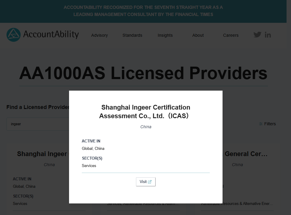 而作為 AccountAbility 認(rèn)可的機(jī)構(gòu),ICAS 英格爾認(rèn)證具備開展 ESG 報(bào)告鑒證的專業(yè)資質(zhì),遵循國際公認(rèn)的 AA1000 審驗(yàn)標(biāo)準(zhǔn),確保鑒證服務(wù)的權(quán)威性和公信力。