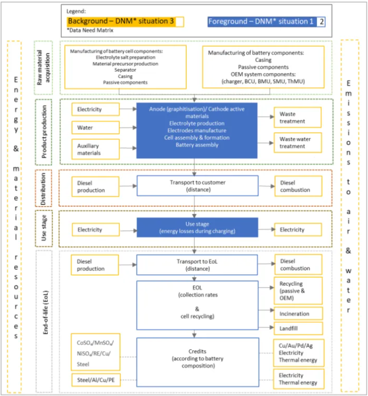 PEFCR明確了產品生命周期的各個階段,包括原材料獲取、電池生產、產品分發、使用階段以及生命周期結束的處理。這一全面的生命周期評估方法有助于深入理解電池產品對環境的全面影響。