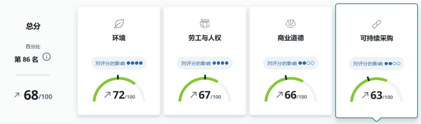 EcoVadis 是全球知名的企業(yè)社會責任評級機構,它從環(huán)境、勞工與人權、商業(yè)道德、可持續(xù)采購這四個關鍵維度,對企業(yè)進行全面評估打分。這個評分在全球供應鏈體系中極具影響力,很多大型企業(yè)在選擇合作伙伴時,都會把它作為重要參考依據(jù)。