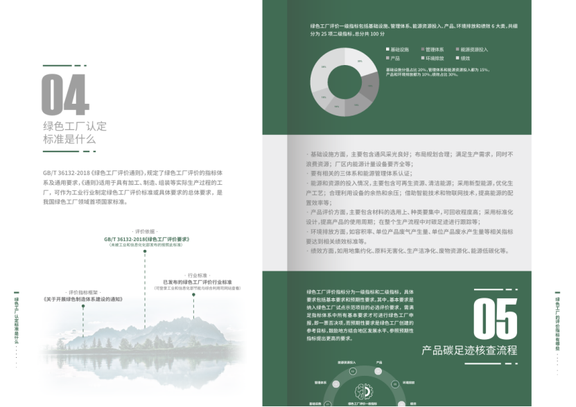 在評價指標方面,依據 GB/T36132 - 2018《綠色工廠評價通則》,評價指標框架包含基礎設施、管理體系、能源資源投入、產品、環境排放和績效 6 大類一級指標,進一步細分為 25 項二級指標,總分為 100 分。