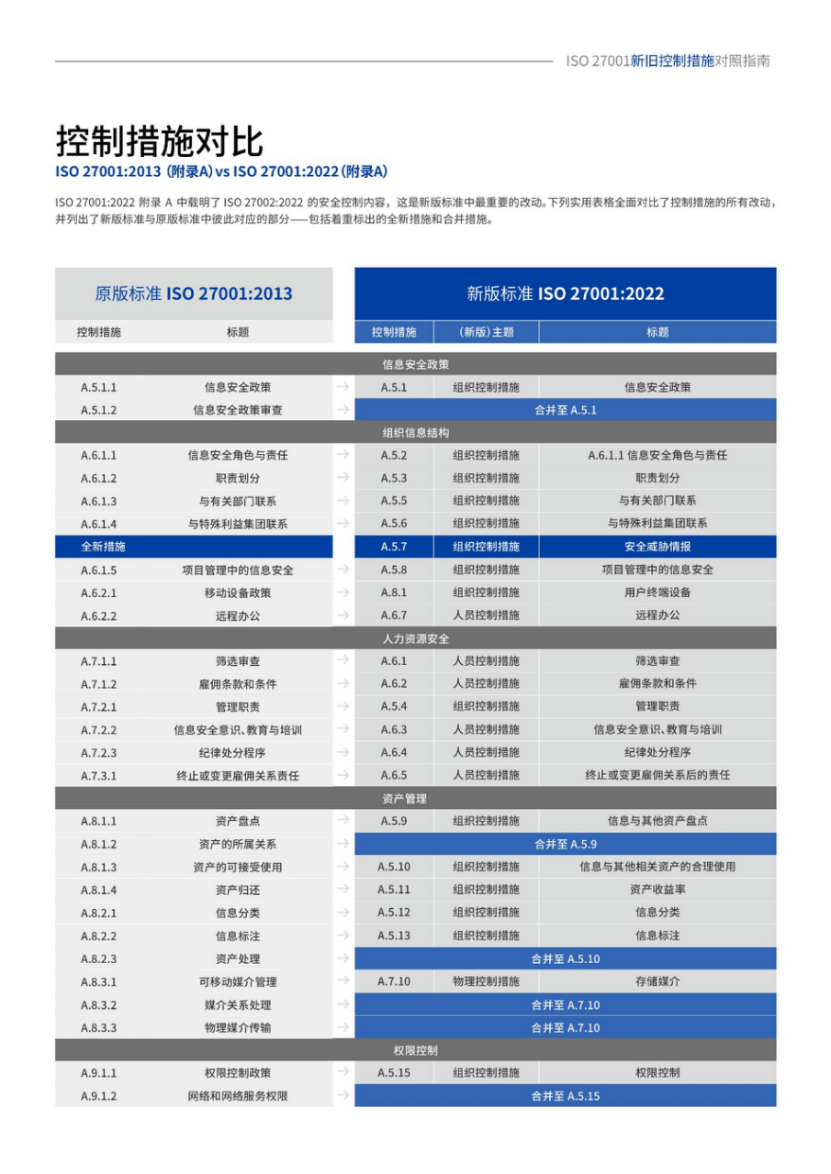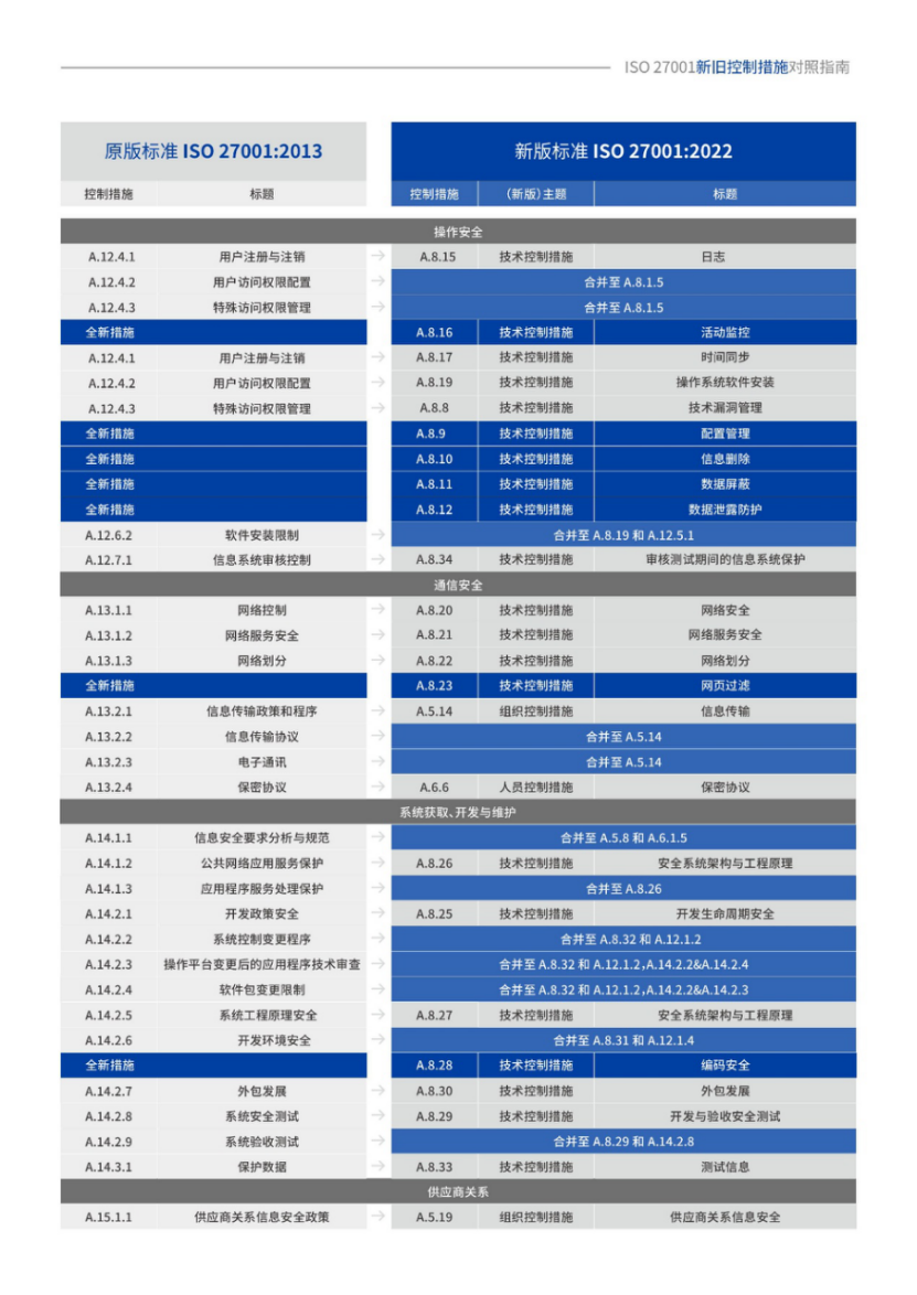 控制項從2013版的114項精簡至93項,通過合并冗余、新增關鍵技術要求實現效率躍升,強化對云安全、開發安全、勒索攻擊的防御能力。